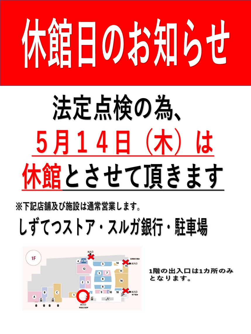 5月14日は休館日となります。